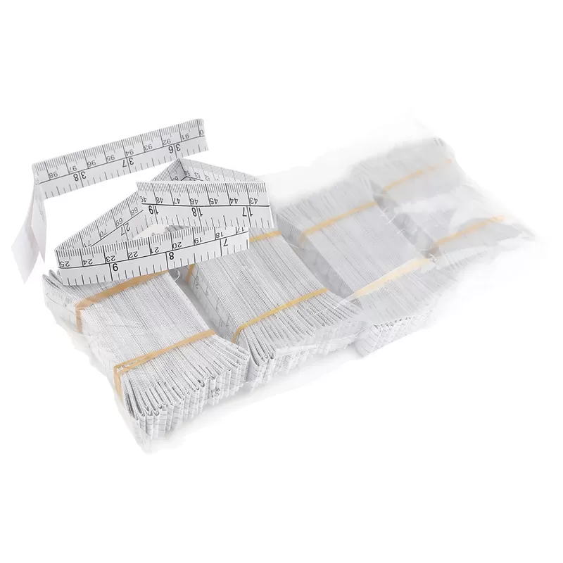 This 1-meter (40-inch) disposable paper tape measure is made from durable 128g art paper and is always in stock, packed in sets of 100 pieces for easy distribution.