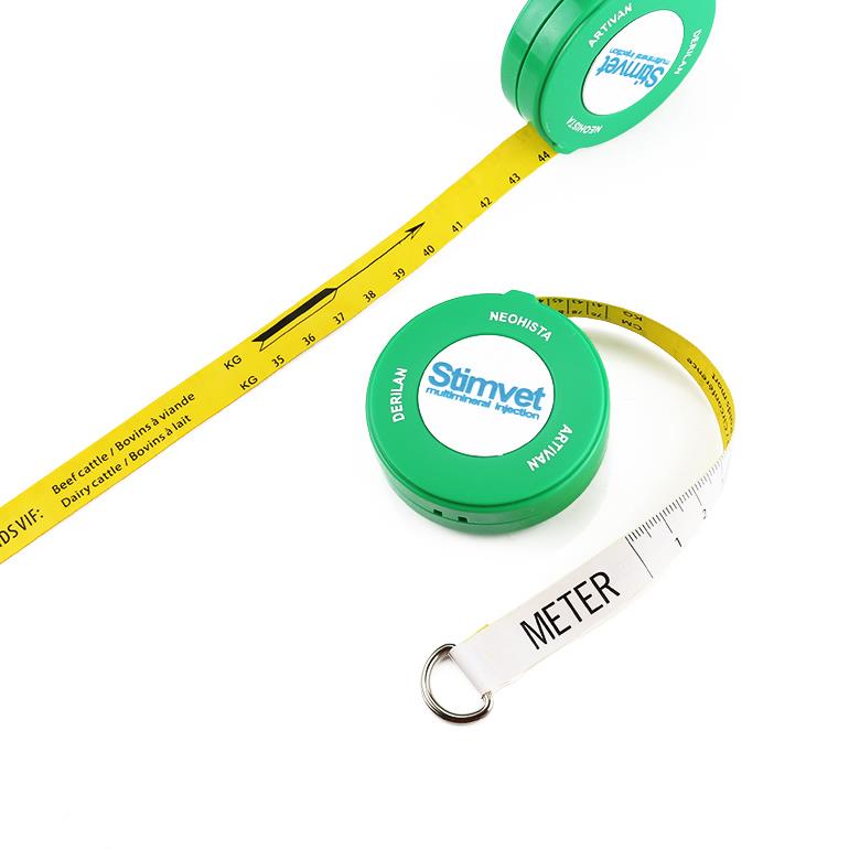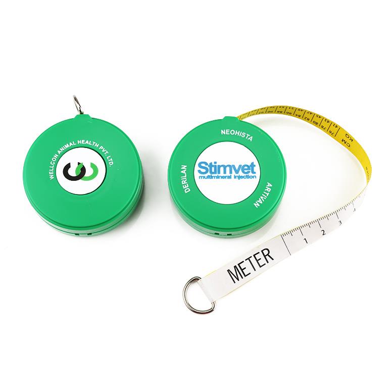 This 2.5m retractable measuring tape with a customizable ABS case (in colors of choice) allows for estimating animal weight through thoracic measurements. Made with resistant materials (ABS and PVC+fiberglass tape), it includes dual scales in centimeters and weight. The 60mm casing can be customized in different colors for easy identification on farms, while its retractable mechanism makes it practical for veterinary clinics and field work. Ideal for monitoring pigs and cattle, it offers precise measurements without a scale.