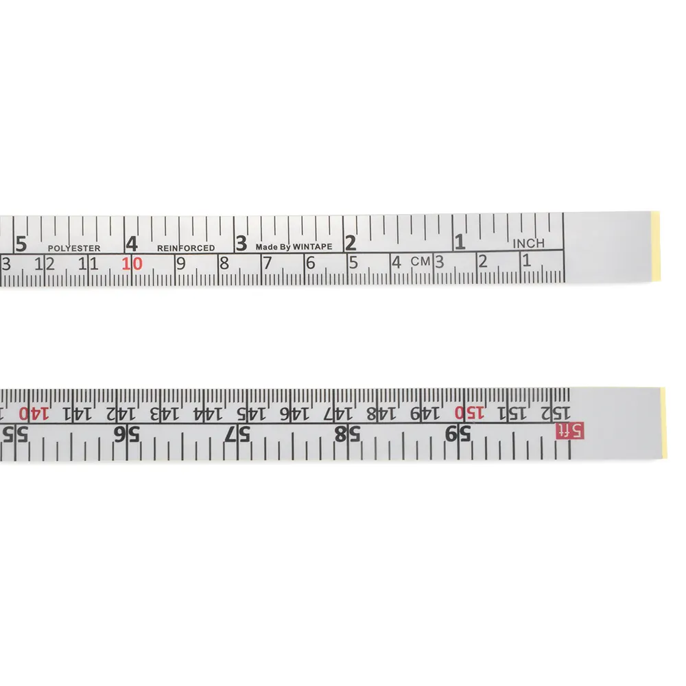 The Wintape 150cm (60 inch) Self-Adhesive Measuring Tape features a sleek silvery background, a right-to-left reading direction, and dual scales in centimeters and inches. Its self-adhesive backing makes it easy to apply on workbenches, cutting tables, and equipment surfaces. Built from durable PVC, it’s ideal for both industrial and DIY use. You can custom print in full color, including logos or unique scales, making it a versatile solution for branding or precision work.
