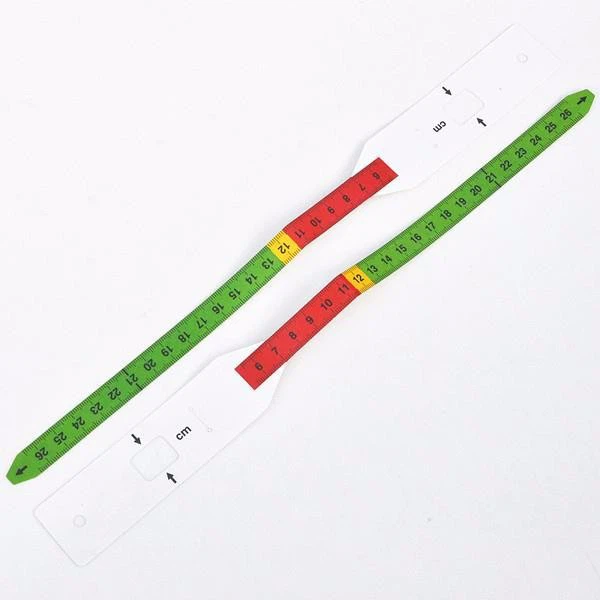 Mid-Upper Arm Circumference (MUAC) Tape Measure and head circumference measuring tape are both made of PP plastic. Muac measuring tape is used to measure the circumference of the mid upper arm. The measurement circumference of the children's version is usually 26 cm, and the measurement circumference of the adult version is usually 56 cm. The measurement circumference of the head circumference tape measure is usually 60 cm and 70 cm.
