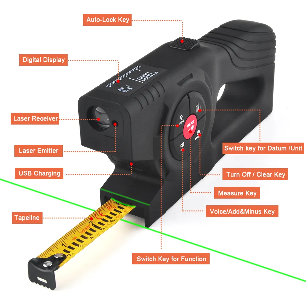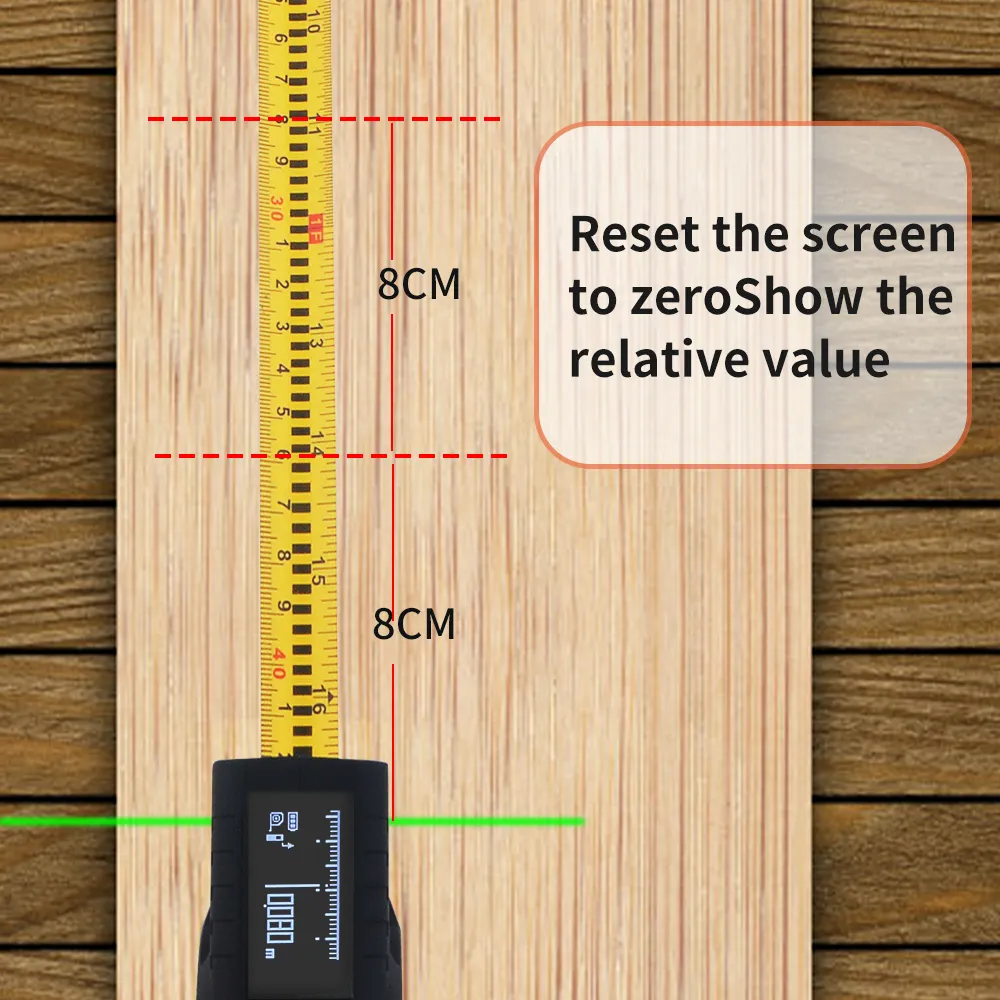 This digital laser tape measure supports area, volume, pythagorean, continous measurements automatically. Measure Smarter, Not Harder. Zero Calculation. .webp)
