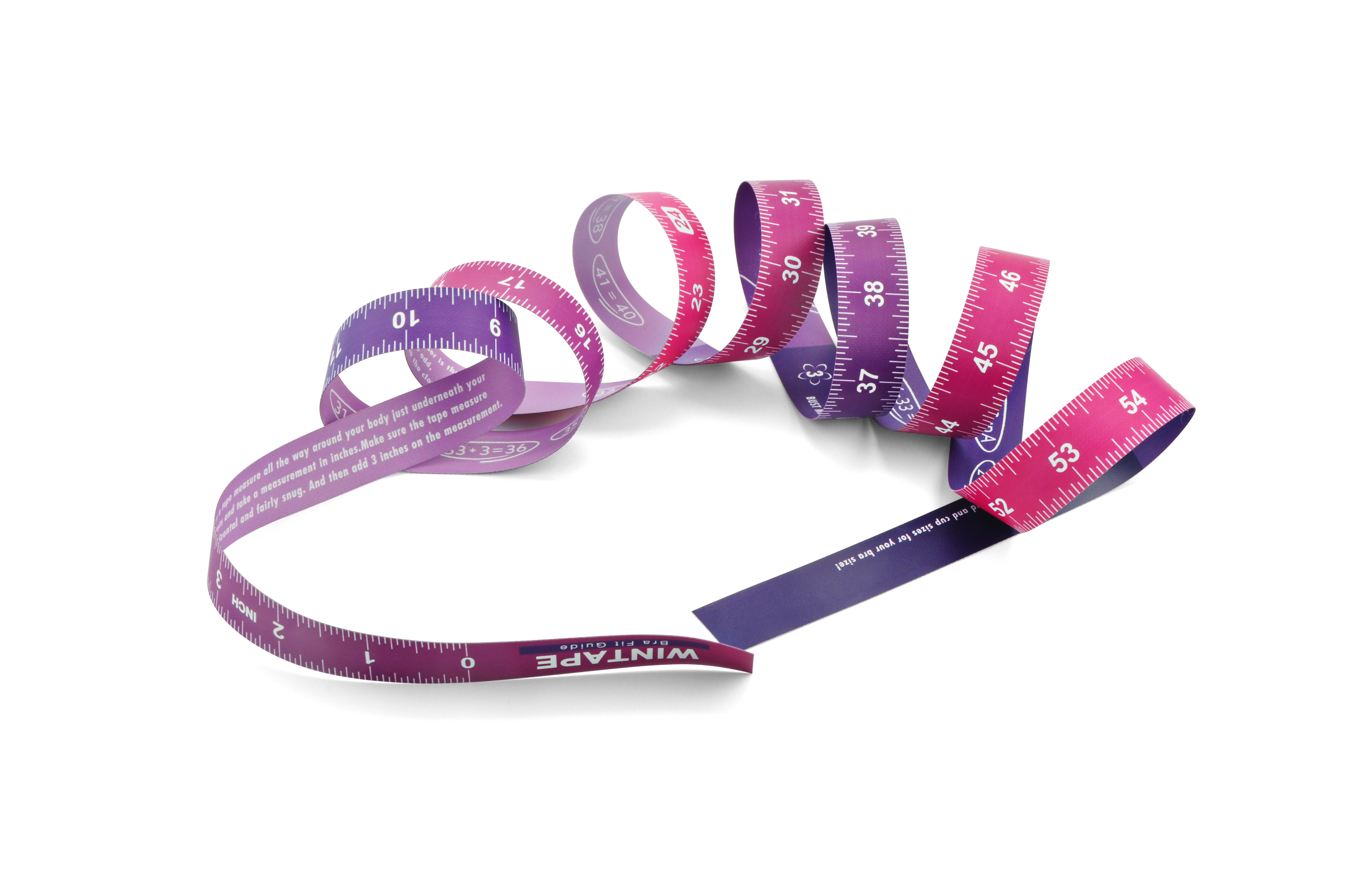Crafted in a stylish pink-purple gradient, this tape is ideal for solo home measurements before ordering bras or clothing online, and perfect for lingerie boutiques to guide customers professionally. Fully customizable colors and designs available to match your brand or personal style.