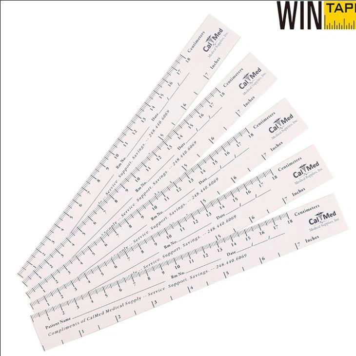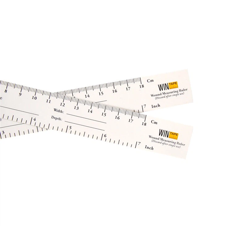 Wound measuring tools are mainly used in surgical operating rooms in hospitals to measure the length and width of wounds. The paper wound measurement ruler is made of white cardboard, the bullseye wound measuring guide is made of transparent PE plastic, the self-adhesive wound measuring tape is made of adhesive synthetic paper, and the visual analog scale(VAS) pain ruler is made of coated paper. These medical rulers are disposable measuring tool for wound size measurement. Each of wound ruler is dedicated blank space for patient ID, date, wound length and width, which improve wound measurement documentation.